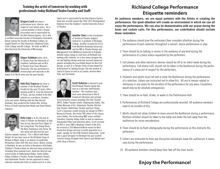 The Richland Theatre Department has consistently been one of my favorite clients. I always ask for a copy of their script so I can get a good feel for it and tailor my work specifically to each production.